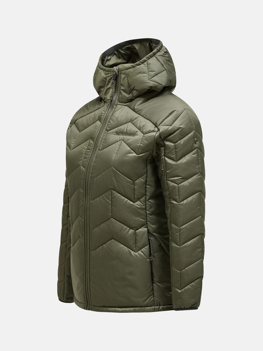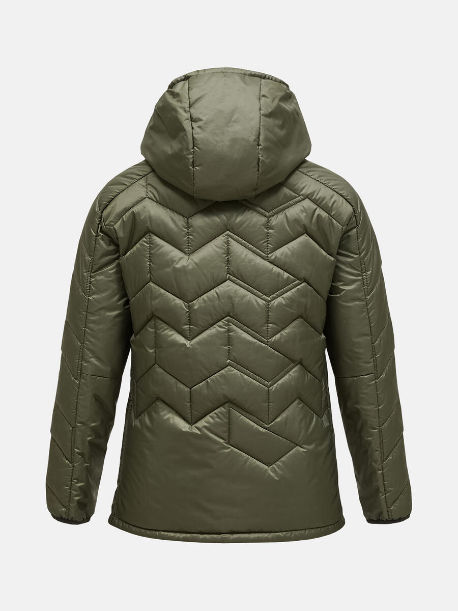 Behalve dat het een lichtgewicht jack is dat aan de meeste van je behoeften op en buiten de bergen voldoet, is het ook het resultaat van een ontwerpproject met een groter doel. Met deze jas zijn we erin geslaagd het stofafval uit de productie te verminderen. Het is ook zo ontworpen dat het veel gemakkelijker te repareren is. De duurzame ripstop-stof biedt gemiddelde bescherming tegen water en wind, terwijl de ademende synthetische isolatie een uitzonderlijk hoge warmte-gewichtsverhouding heeft, zelfs in natte omstandigheden.