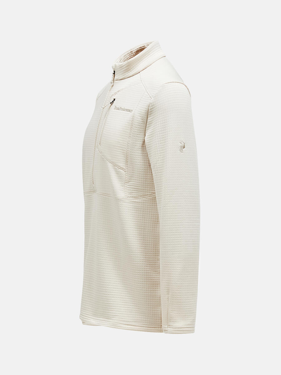 Deze elastische en technische fleece met halve ritssluiting is gemaakt met een rasterpatroon dat de luchtcirculatie verbetert, wat helpt bij je temperatuurbeheersing. Het heeft een normale pasvorm en is een basisstuk voor al je buitenactiviteiten. Met de borstzak met ritssluiting kunt u uw kleinere belangrijke spullen meenemen zonder uw bewegingen te beperken. Draag hem onder een shell of draag hem zelfstandig.